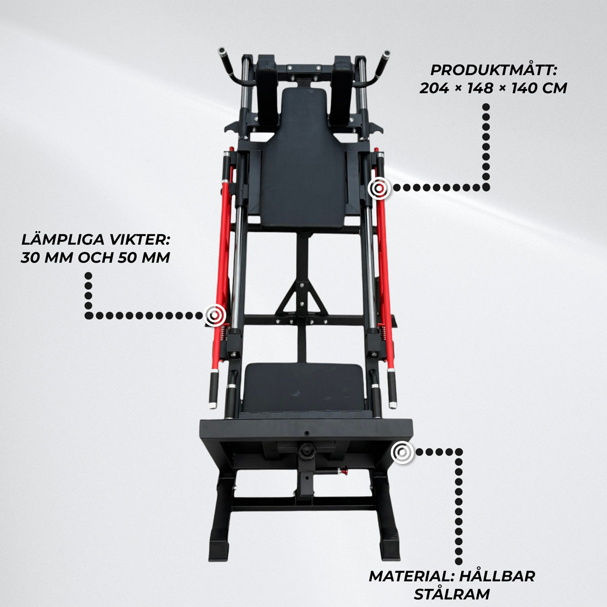 • Multifunktionell benmaskin: Utför hack squats, benpressar och vadmuskelsövningar med en enda maskin.
