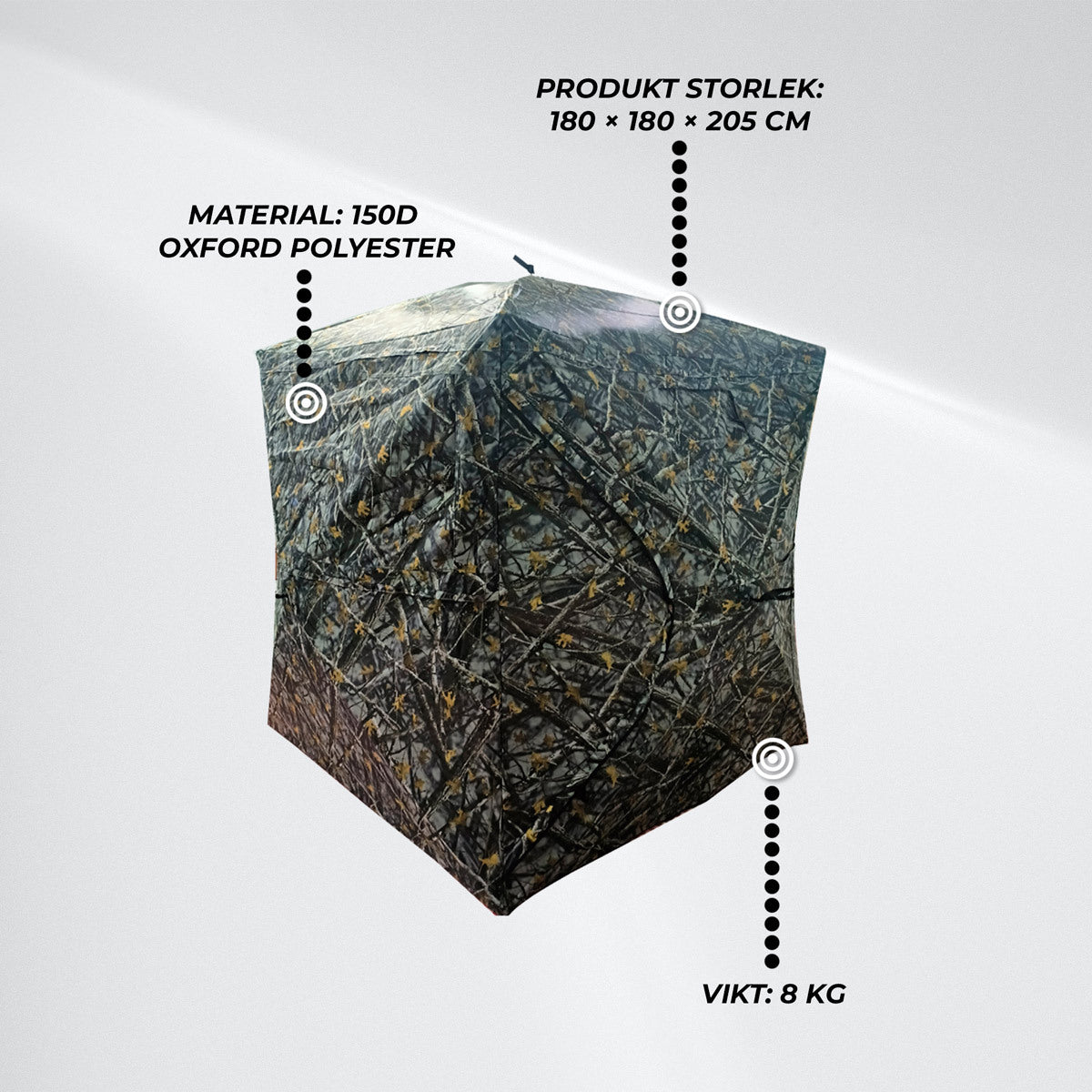 Snabb pop-up-konstruktion: Reses och fälls ihop på sekunder – perfekt för rörlig jakt.