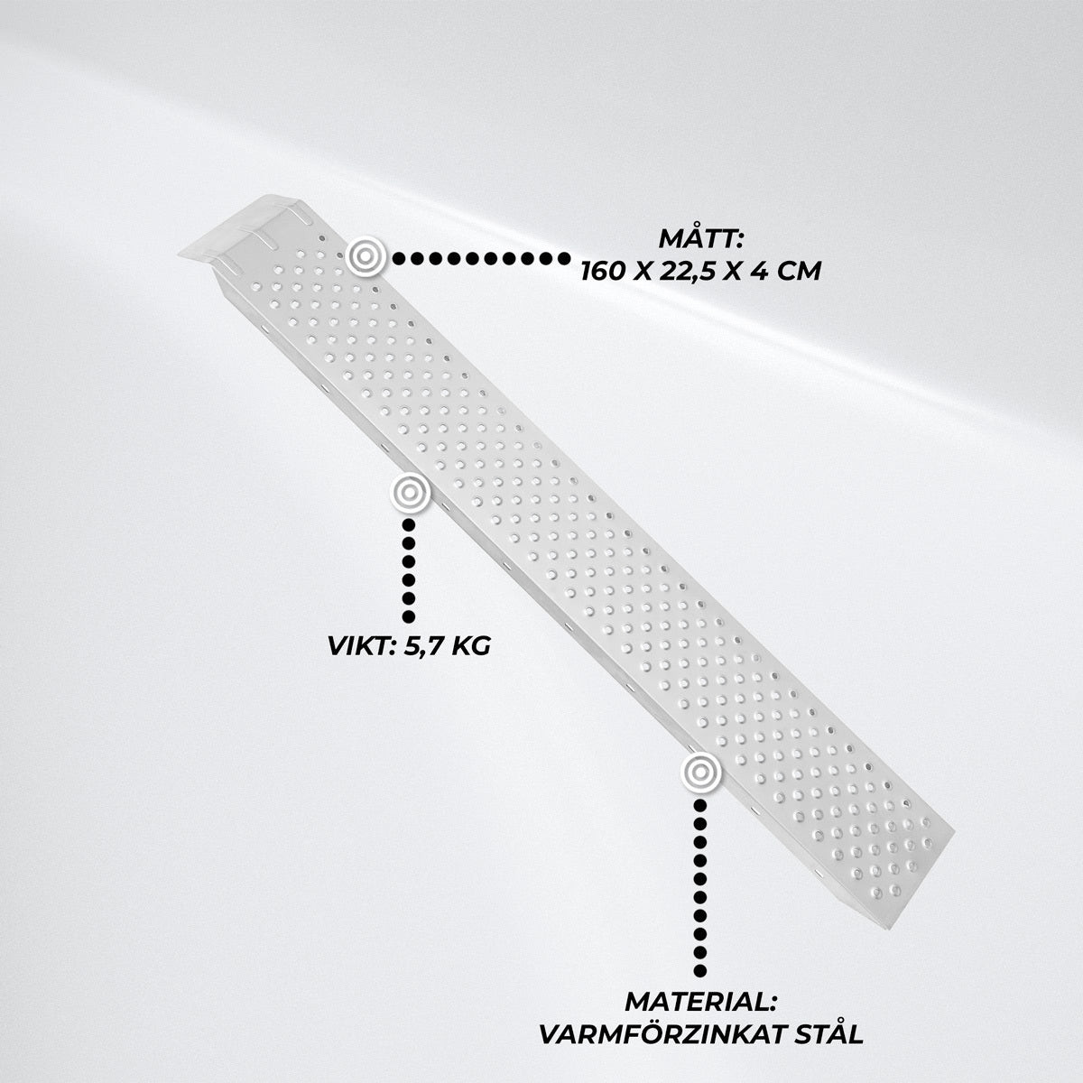 • Stark konstruktion i galvaniserat stål: Tack vare högkvalitativt material och solitt utförande garanterar denna uppkörningsramp en lång livslängd och hållbarhet under många år av användning.