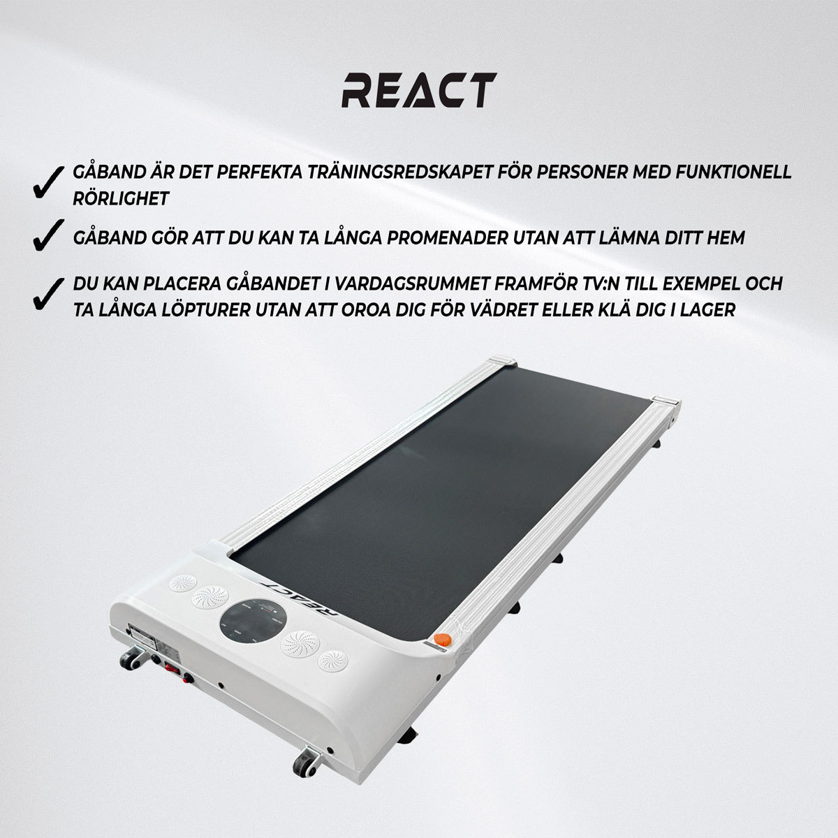 Upptäck den optimala balansen mellan bekvämlighet och effektivitet med React Under Desk Gåband 1500 White. Designad för att smidigt integreras under ditt skrivbord, möjliggör denna innovativa produkt för motionsvana mitt i din arbetsdag utan att du behöver avsätta extra tid för gymmet. Oavsett om du är ute efter att förbättra din fysiska kondition, upprätthålla din hälsa eller hantera din vikt, erbjuder detta gåband från React en oslagbar kombination av praktiska egenskaper och stilren design, allt medan det ger dig friheten att träna på dina egna villkor.