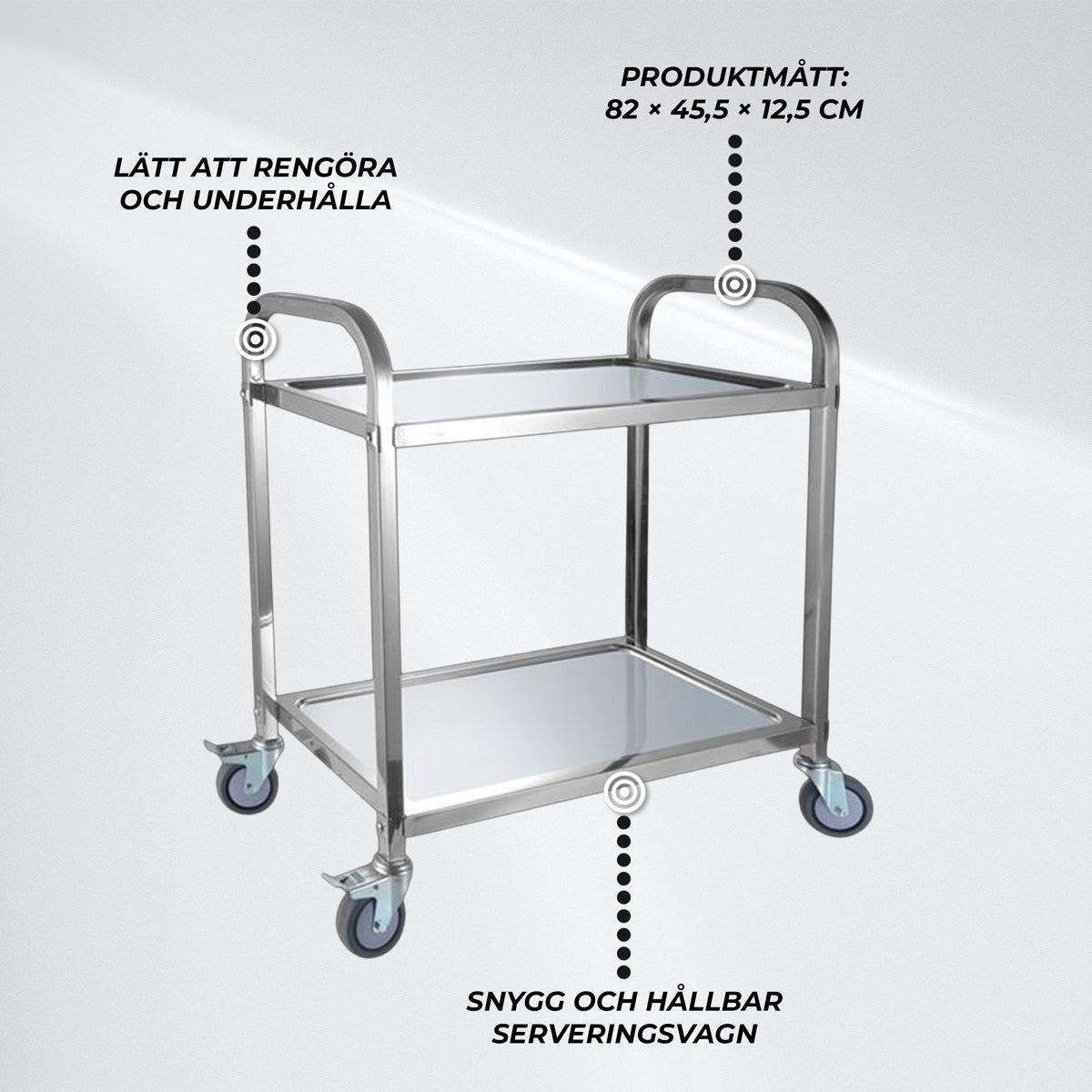 Lykke Serveringsvagn erbjuder en kombination av stil, hållbarhet och funktionalitet som passar perfekt för ditt moderna hem. Dess eleganta design kompletterar samtida interiörer och ger ett städat och attraktivt utseende i alla rum. Tillverkad av högkvalitativt 201 rostfritt stål, är denna serveringsvagn inte bara motståndskraftig mot korrosion utan också byggd för att hålla, vilket säkerställer att du kommer att njuta av dess användbarhet och skönhet för lång tid framöver. Dessutom är den lätt att manövrera vilket gör den idealisk för att servera dina gäster eller för enkel förvaring. Oavsett om du använder den som en barvagn, drinkvagn eller som ett praktiskt förvaringsalternativ, är Lykke Serveringsvagn ett utsökt val som förenar funktionalitet med sofistikerad design.