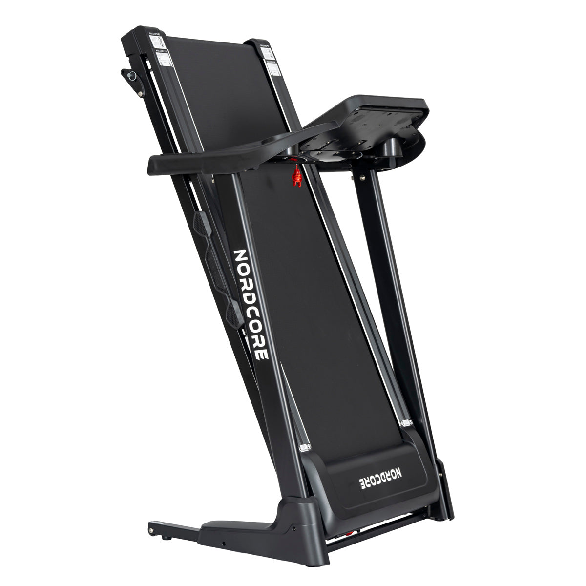 Med Nordcore Löpband 2500 kan du nå dina träningsmål bekvämt från ditt eget hem. Detta högkvalitativa löpband är konstruerat för användarvänlighet och drivs av en kraftfull 3 HV-motor, med justerbara hastigheter från 1 till 14 km/h. Det är perfekt anpassat för både promenader, joggning och löpning.