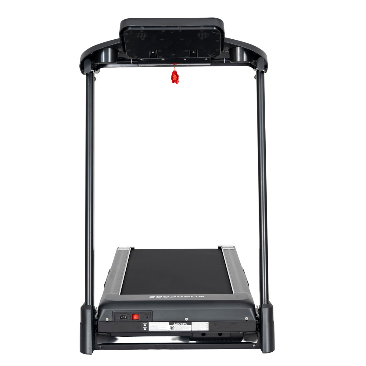 Lätt att förvara: Hopfällbar design med hjul gör det enkelt att flytta och förvara löpbandet.